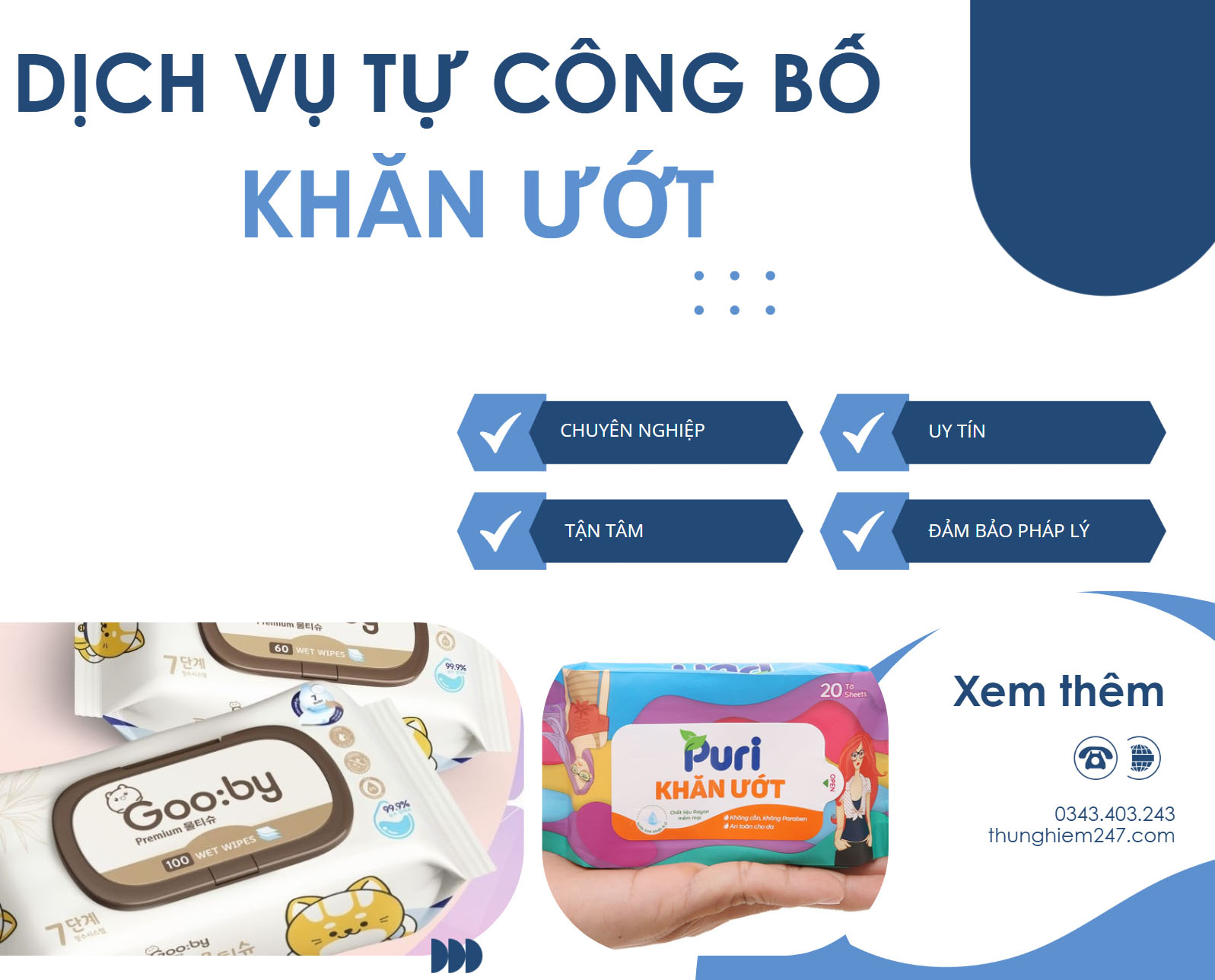 Dịch vụ tự công bố khăn ướt là một trong những việc làm cần thiết doanh nghiệp hay hộ kinh doanh cần thực hiện khi cung ứng sản phẩm ra thị trường. Tuy nhiên, doanh nghiệp chưa biết cách làm hồ sơ thủ tục tự công bố sản phẩm ra sao hãy để dịch vụ công bố sản phẩm của Thunghiem247.com hỗ trợ đảm bảo đúng quy định pháp lý nhanh chóng tiện lợi và hiệu quả.