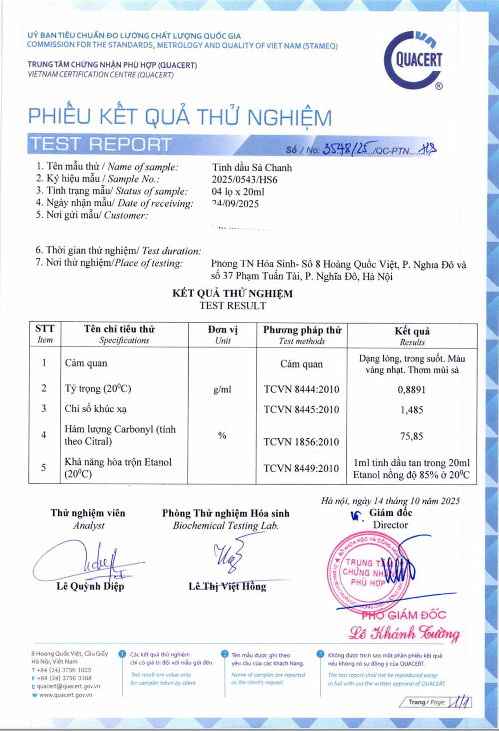 – Phiếu kiểm nghiệm sẽ do cơ quan NHÀ NƯỚC có thẩm quyền chức năng cấp – Là đơn vị nhà nước đầu ngành Tiêu chuẩn – Đo Lường Chất lượng cấp phép. Lưu ý giấy tờ của chúng tôi có giá trị pháp lý trên toàn quốc, dấu đỏ trực thuộc Uỷ Ban Tiêu Chuẩn Đo lường Chất lượng – Bộ Khoa học Công nghệ.