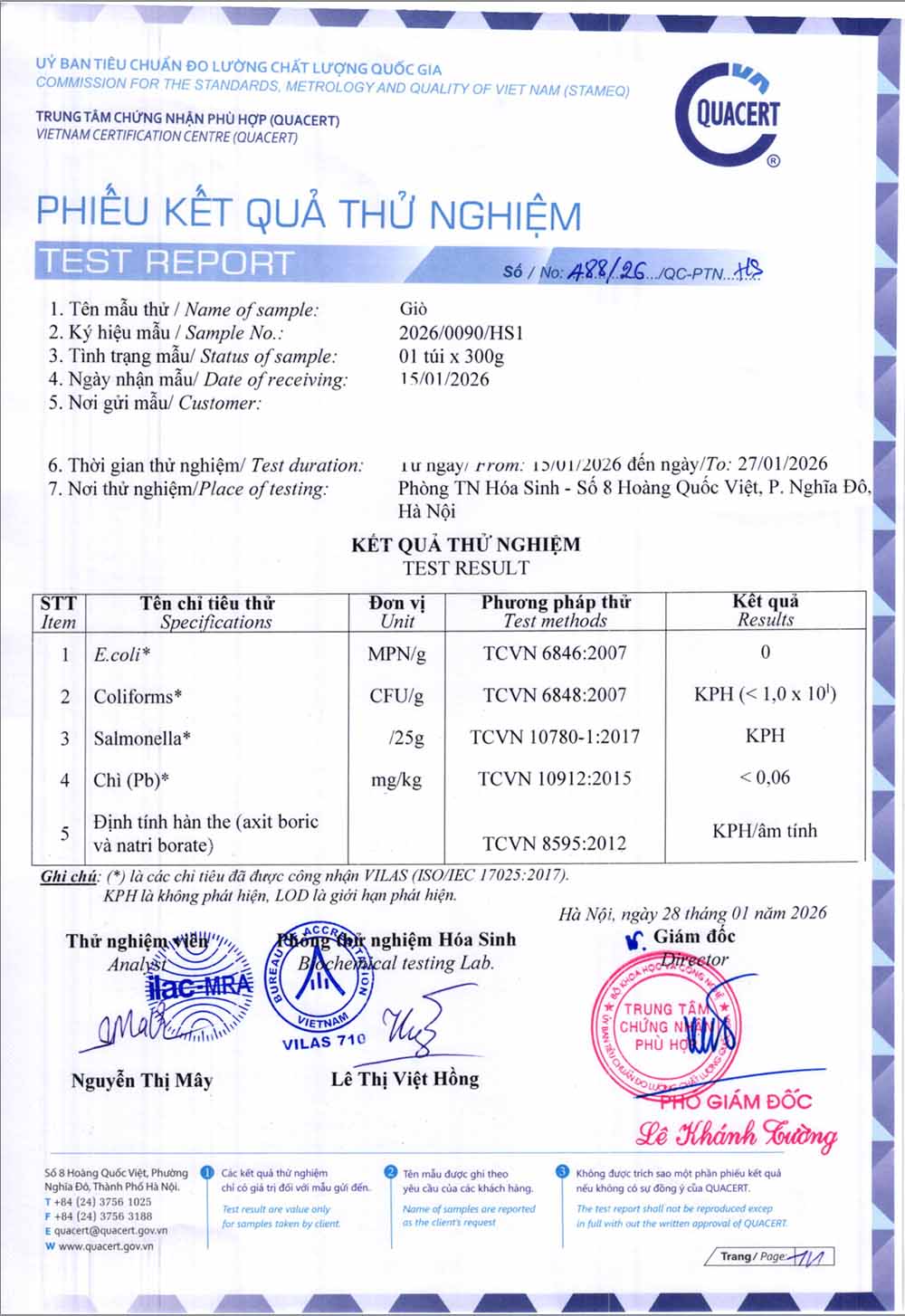 => Xem thêm phiếu kiểm nghiệm thực phẩm đáp ứng pháp lý