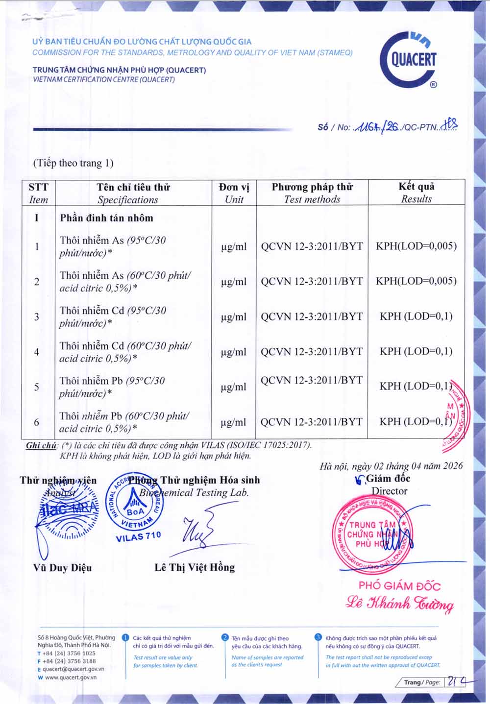 – Phiếu kiểm nghiệm sẽ do cơ quan NHÀ NƯỚC có thẩm quyền chức năng cấp – Là đơn vị nhà nước đầu ngành Tiêu chuẩn – Đo Lường Chất lượng cấp phép. Lưu ý giấy tờ của chúng tôi có giá trị pháp lý trên toàn quốc, dấu đỏ trực thuộc Tổng cục Tiêu Chuẩn Đo lường Chất lượng – Bộ Khoa học Công nghệ